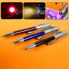 Counterfeit Currency Detector multi-functional laser pen Red Laser Pointer + LED Light + Ballpoint Pen + UV Money Detector + PDA Stylus Pen100% Brand new and high qualityMultifunctional with Red Laser Pointer + LED Light + Ballpoint Pen +Counterfeit CurrencyDetector + PDA Stylus PenIt's a good helper for professors, teachers, doctors, student or anyone who needs give presentation with a board or screen,Upper button in the pen controls the Red Laser PointerPress the first time of the lower button is for the LED Light, press the second time is for UV Money DetectorThe LED Light features as adjustable metallic goose neck.UV Money Detector will help you to reject the forged note. Say goodbye forever to the counterfeit money.Ballpoint Pen works as normal Ball pen.Size:135x10mmPowered by 3 x LR41 button cell battery Comes with metal gift box